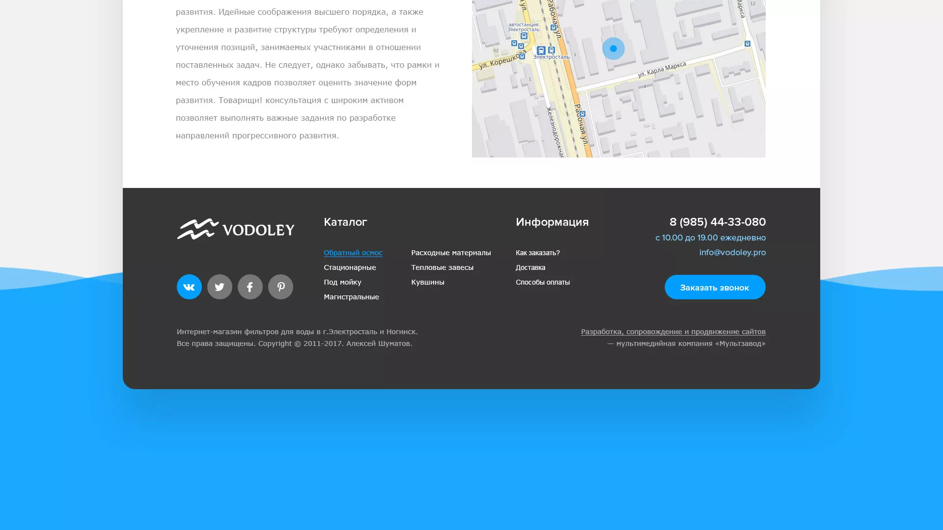 Работать с компанией «Мультзавод» удобно и легко, поэтому, если Вам требуется создание аналогичного сайта по продаже и установке фильтров очистных сооружений в Велиже, мы предложим Вам действительно выгодные цены и удобные условия сотрудничества. Мы обещаем, что вложенные в разработку сайта деньги окупятся и Вы получите современный рабочий интернет-магазин!
